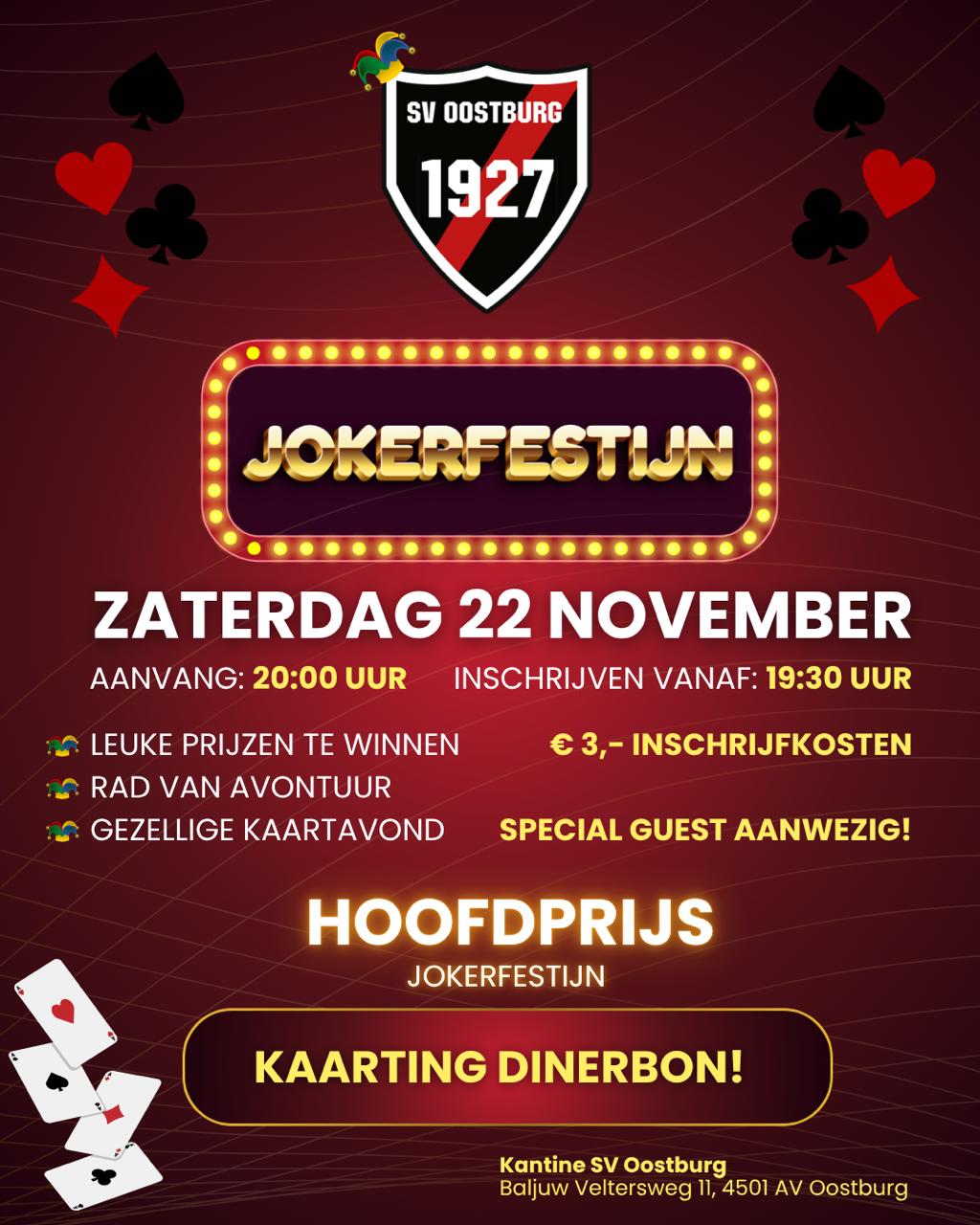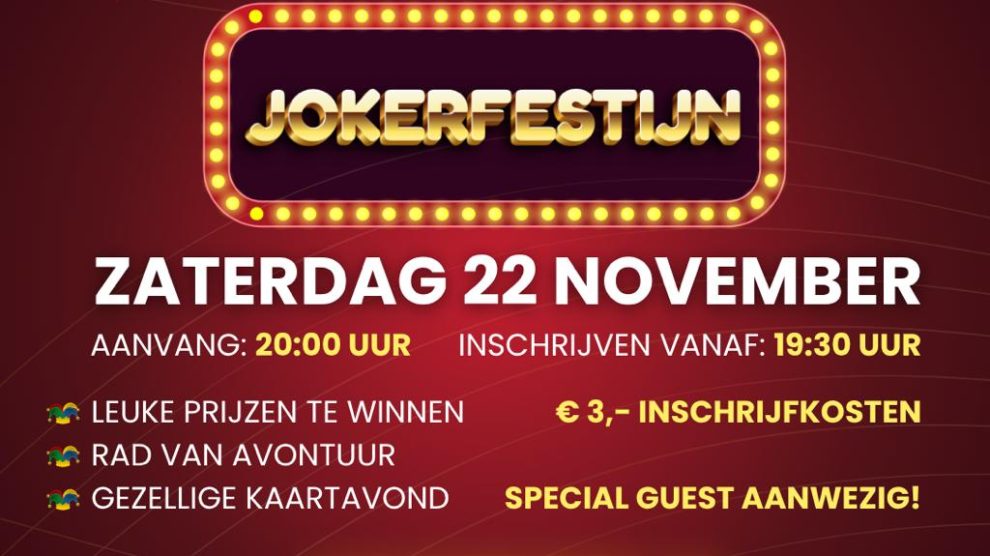 Kom gezellig meedoen aan ons JOKERFESTIJN! Een avond vol plezier, spanning en mooie prijzen.